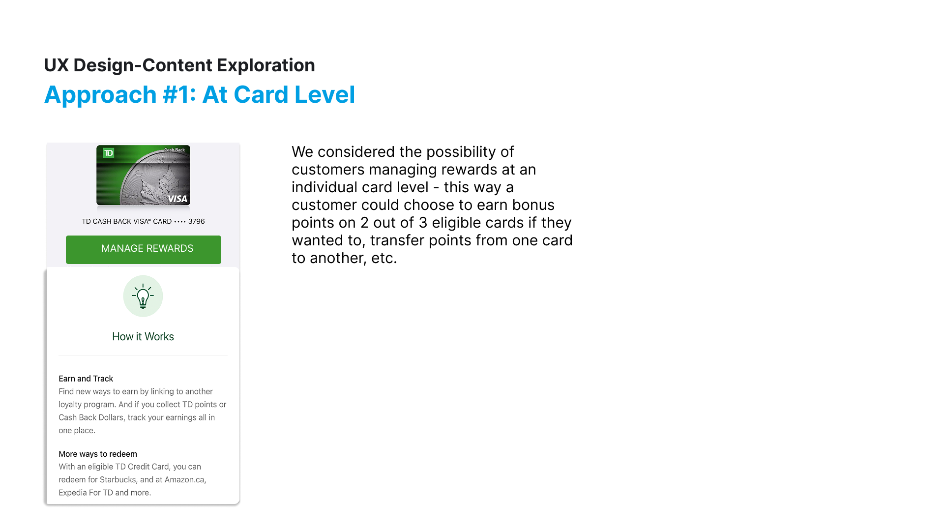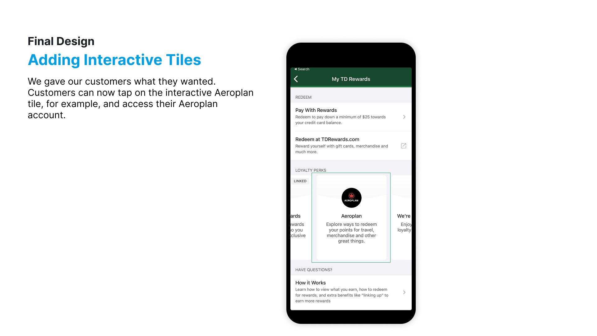 Loyalty Hub Increased TD app engagement by making earning and redeeming rewards clear and intuitive for customers.